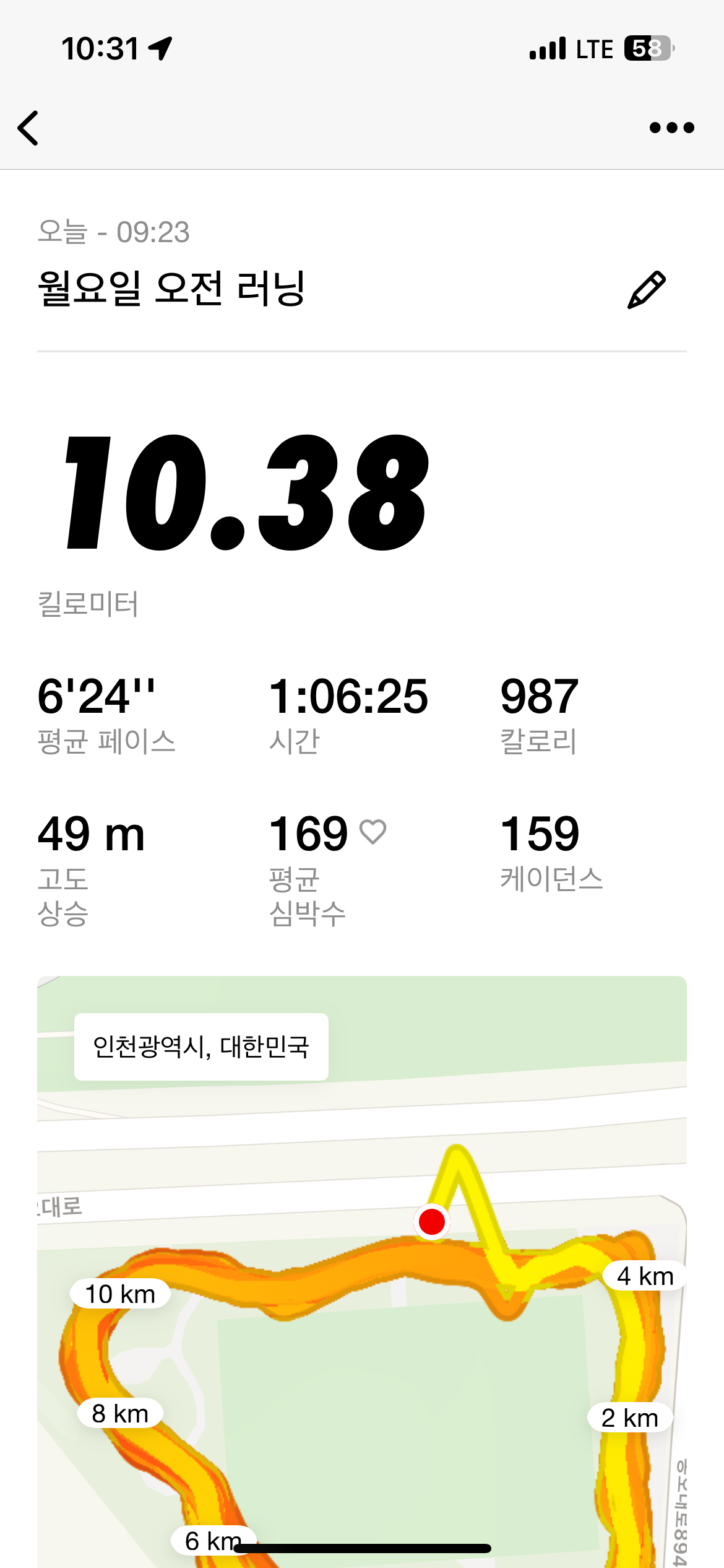 | 4.28 | 월 | 러닝 | 10.38km | 1:06:25 |